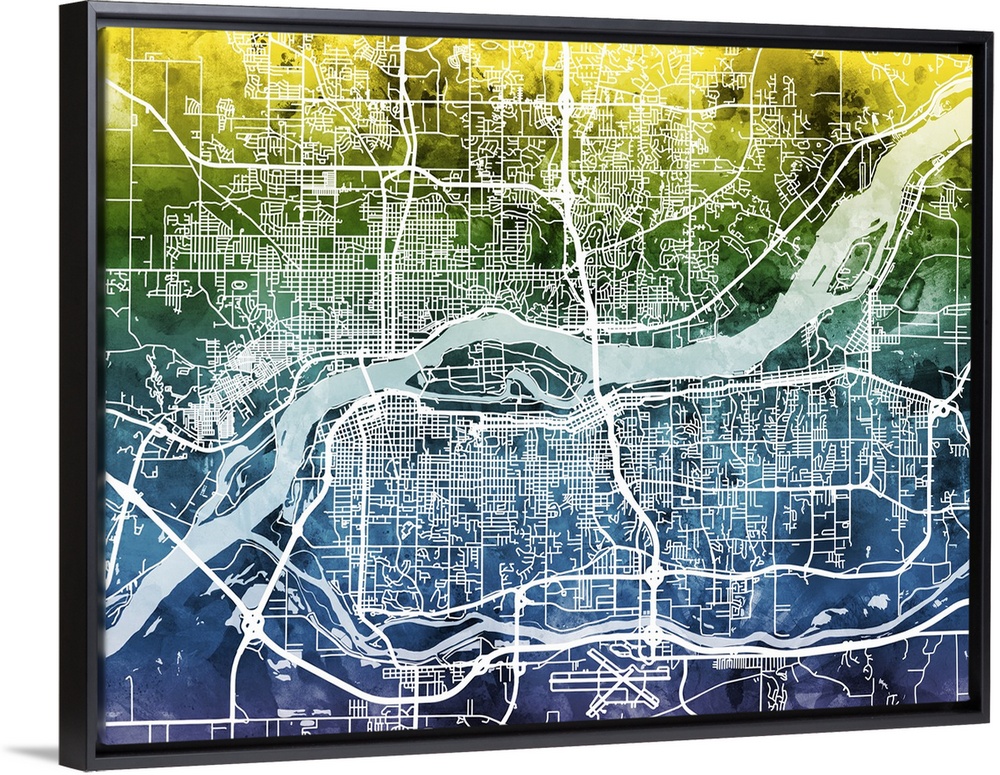 <p>Watercolor street map of Quad Cities, Illinois and Iowa, United States.</p>