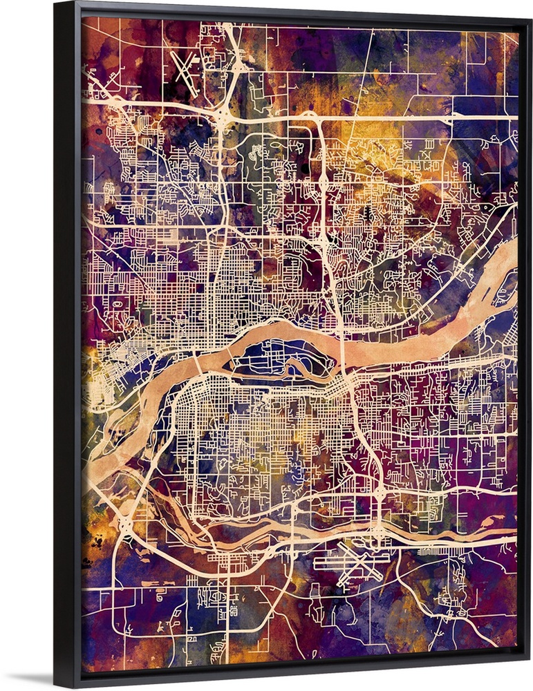 <p>Watercolor street map of Quad Cities, Illinois and Iowa, United States.</p>