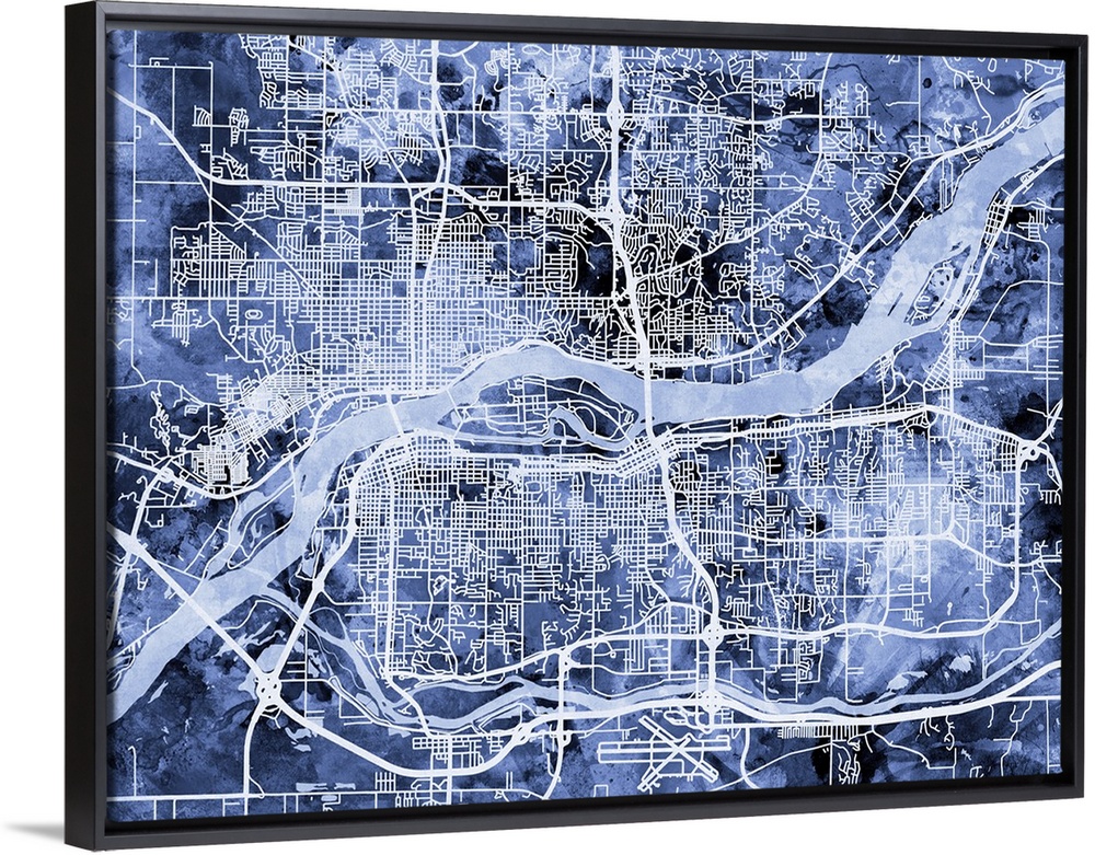 <p>Watercolor street map of Quad Cities, Illinois and Iowa, United States.</p>