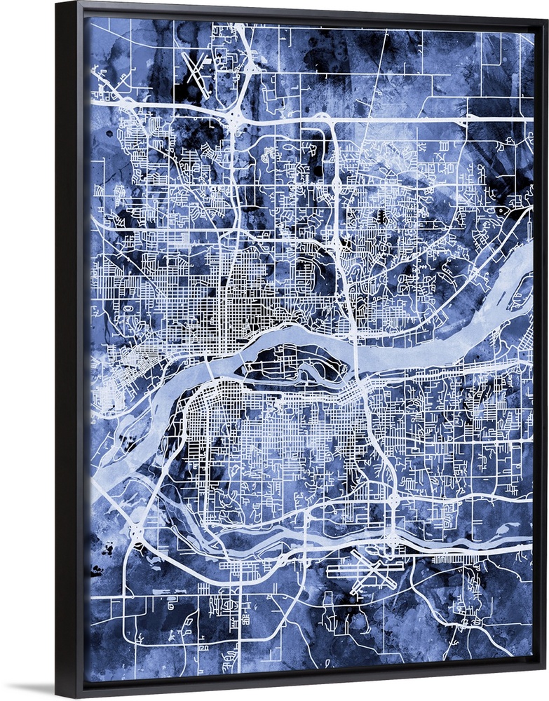 <p>Watercolor street map of Quad Cities, Illinois and Iowa, United States.</p>