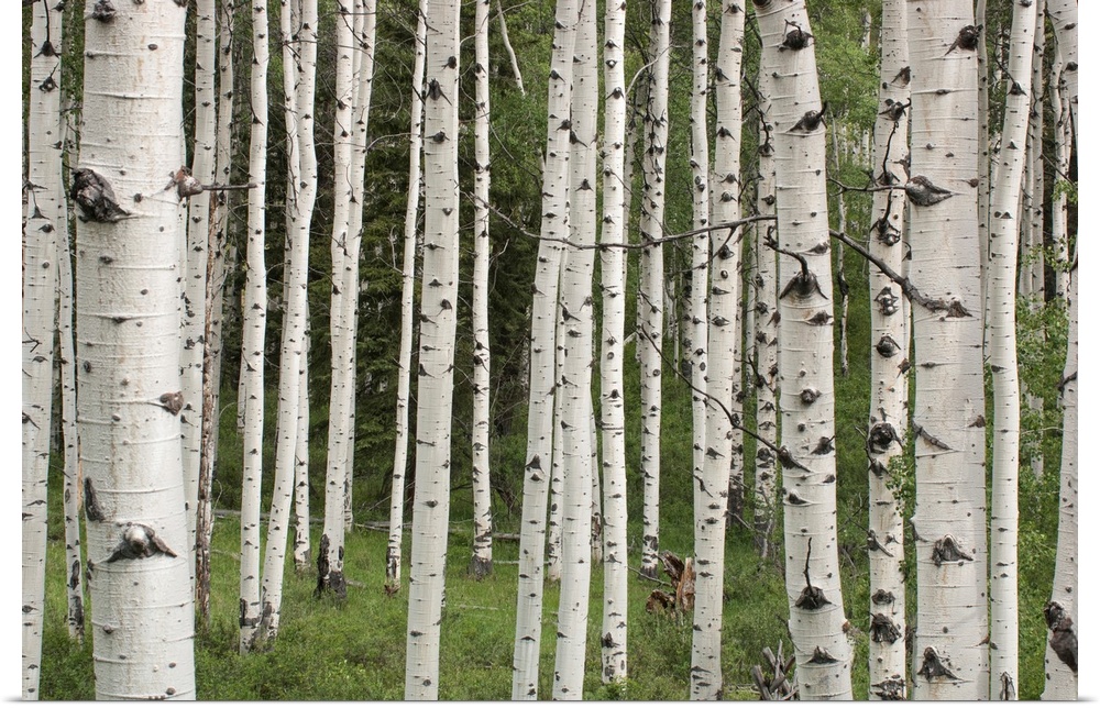 <p>Quaking aspen tree trunks (Populus tremuloides) in a woodland in Yellowstone National Park, Wyoming, United States of America</p>