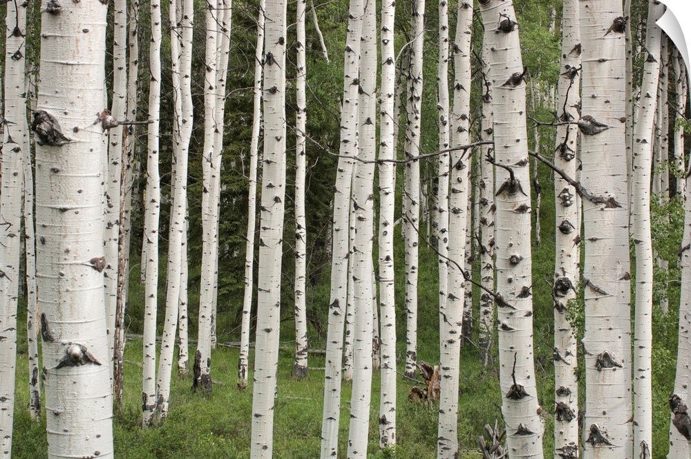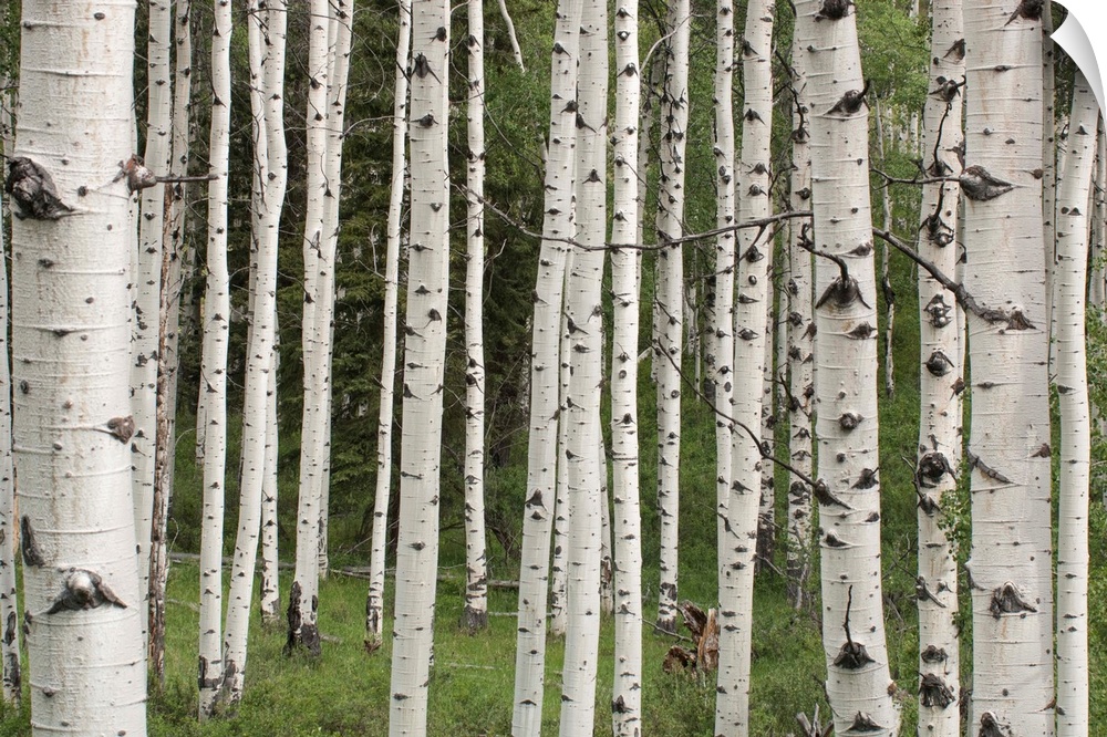 <p>Quaking aspen tree trunks (Populus tremuloides) in a woodland in Yellowstone National Park, Wyoming, United States of America</p>