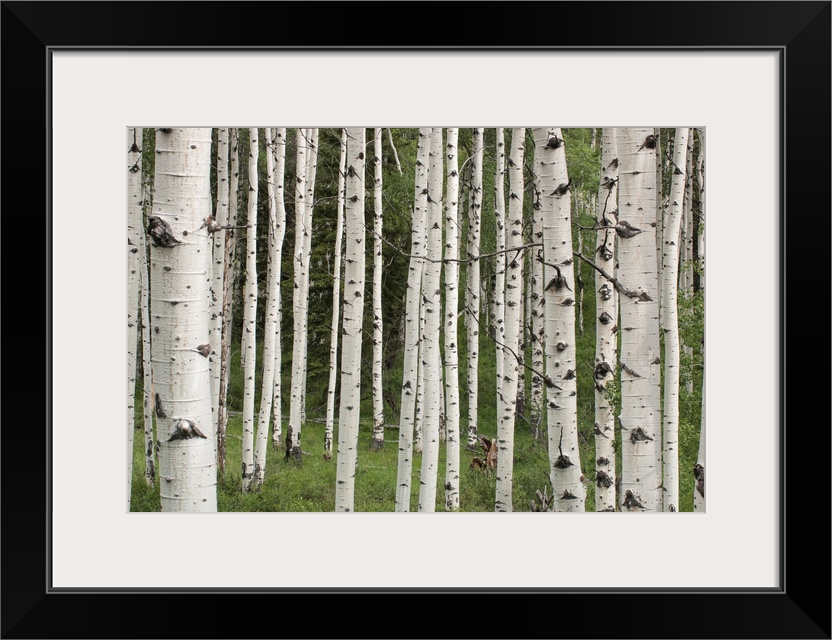 <p>Quaking aspen tree trunks (Populus tremuloides) in a woodland in Yellowstone National Park, Wyoming, United States of America</p>