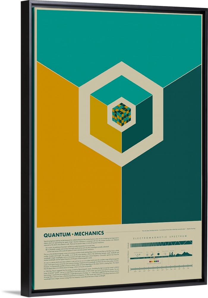 <p>Educational graphic poster with facts about quantum mechanics.</p>