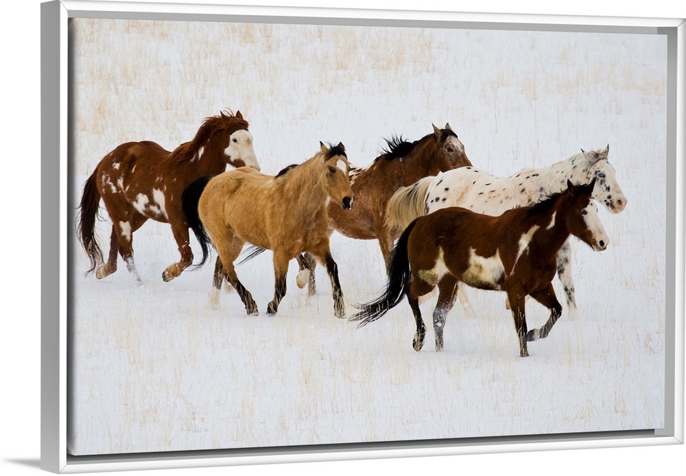 <p>Quarter Horses running wintertime Hide Out Ranch Shell Wyoming</p>
