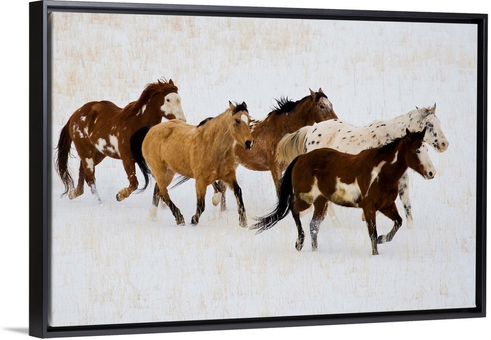 <p>Quarter Horses running wintertime Hide Out Ranch Shell Wyoming</p>