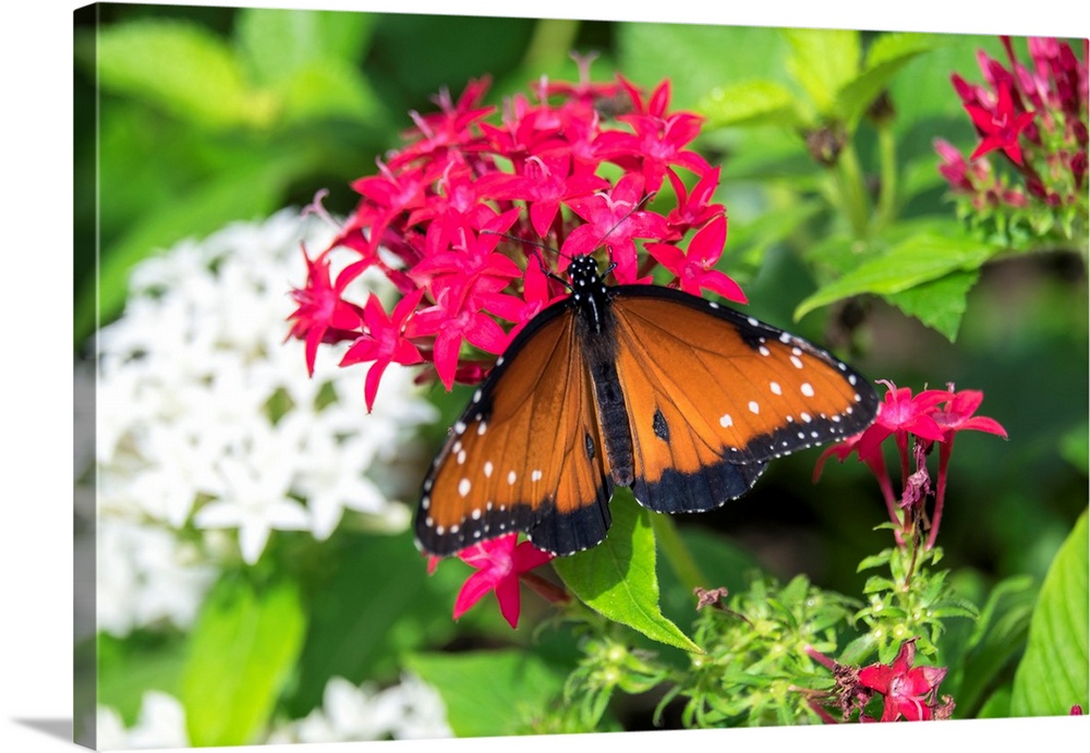<p>Queen butterfly, red Pentas, USA</p>