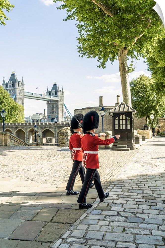 <p>Queens Guards marching at the Tower of London, UNESCO World Heritage site, London, England, UK</p>