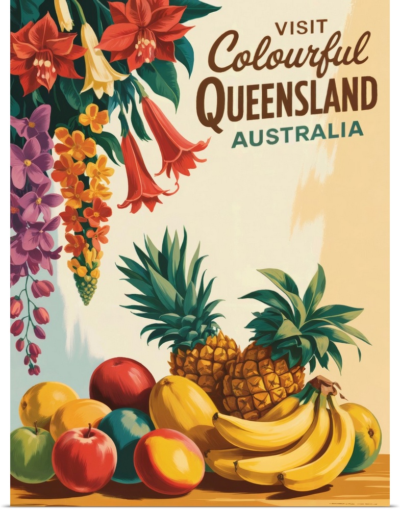Art Decorative Art Food and Drink Food Fruit Tropical Fruit Graphic Art Andreas Magnusson Australia Queensland Travel Posters Retro Travel Posters