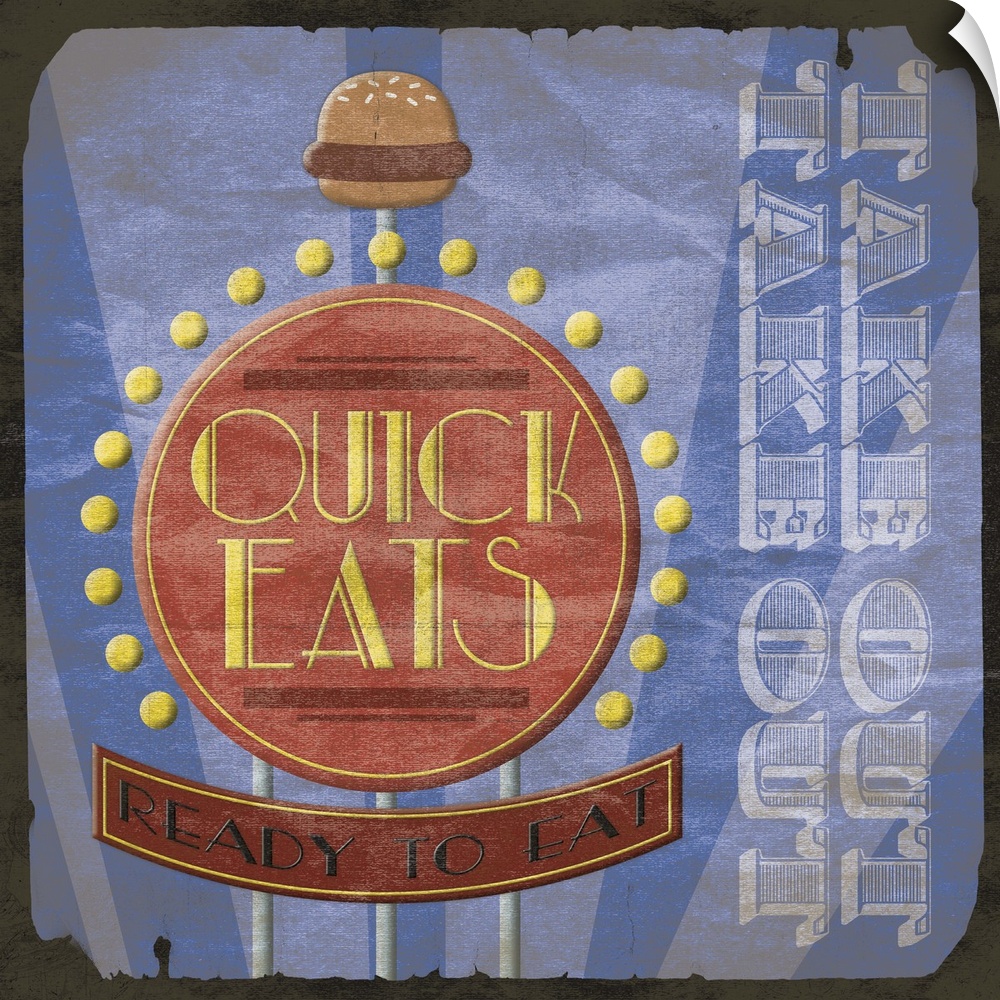 <p>Retro diner sign artwork, with a rustic faded border around the image.</p>