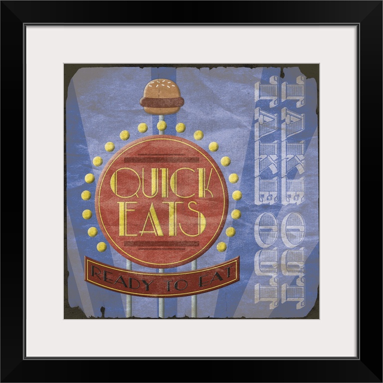 <p>Retro diner sign artwork, with a rustic faded border around the image.</p>