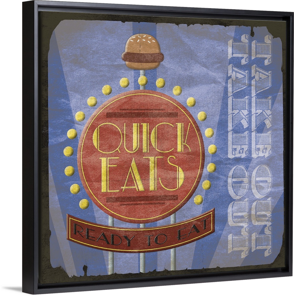 <p>Retro diner sign artwork, with a rustic faded border around the image.</p>