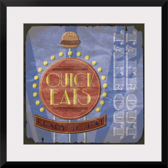 <p>Retro diner sign artwork, with a rustic faded border around the image.</p>