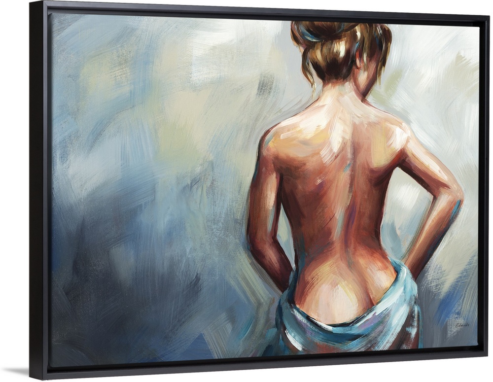 <p>Contemporary artwork drawn of a woman's backside as she drapes a cloth just below her waist.</p>