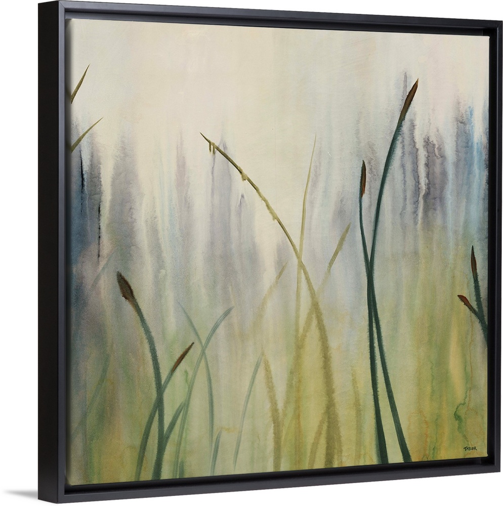 <p>Close-up watercolor painting of a small cluster of tall grasses that seem to fade into the foggy background as you look further.</p>