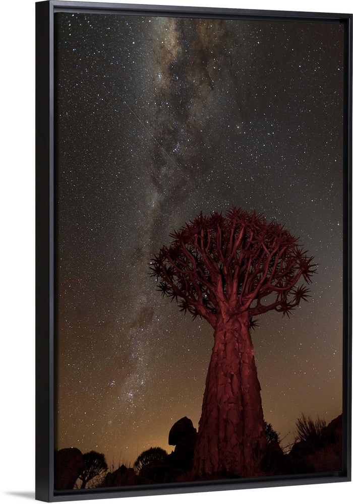 <p>An African Quiver Tree at night, with the Milky Way Galaxy visible in the sky overhead.</p>
