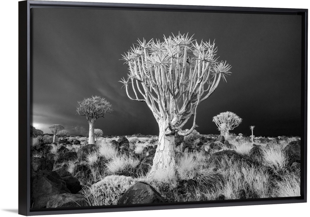 <p>Infrared view of Quiver trees (Aloidendron dichotomum), Quiver tree Forest, near Keetmanshoop, Namibia.</p>