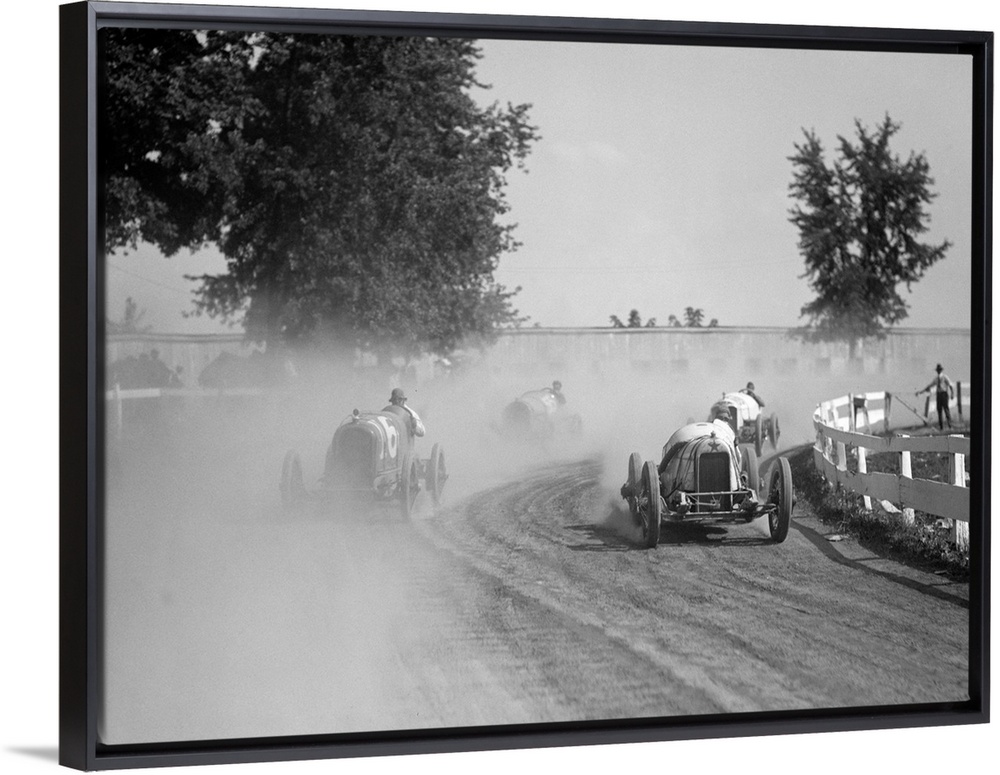 <p>Racecars rounding a turn at the Rockville Fair auto races, August 25, 1923.</p>