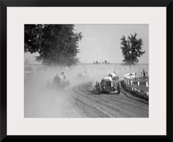 <p>Racecars rounding a turn at the Rockville Fair auto races, August 25, 1923.</p>