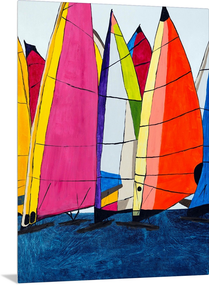 Brent Abe Art Coastal Beach House Décor Contemporary Art Rivers, Lakes, and Oceans Multicolor Wall Art Painting Transportation Boat Sailboat