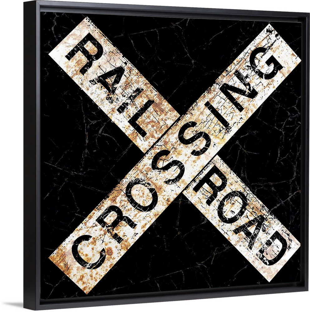 <p>A worn, distressed, cracked and rusty Railroad Crossing street sign.</p>