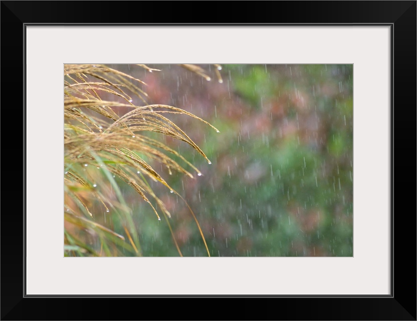 <p>Fine art photo of rain drops hanging on to the ends of blades of grass.</p>