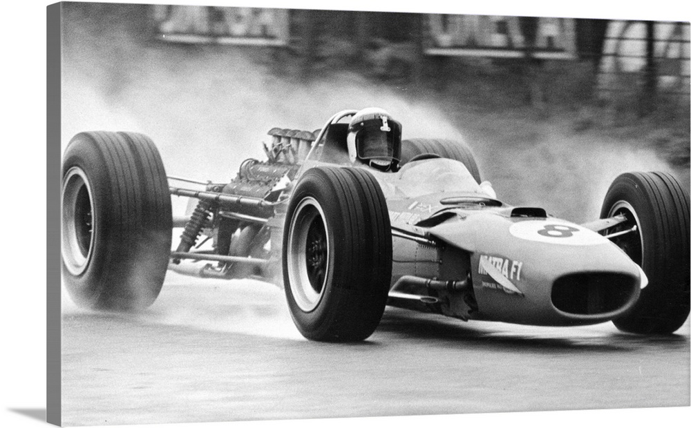 <p>23rd June 1968 Scottish racing driver Jackie Stewart at the wheel of the Tyrrell team's V8 Matra-Ford, on the way to winning the Dutch Grand Prix at Zandvoort His average speed was 84659 miles per hour, which he managed despite the rain and having his</p>