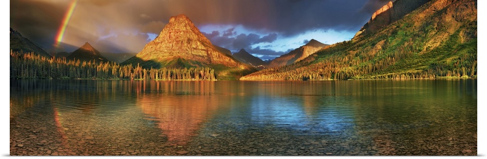 <p>Rainbow at Two Medicine Lake with Sinopah Mountain. USA, Montana, Glacier National Park, Two Medicine Lake. Rocky Mountains. Montana, North America, USA.</p>