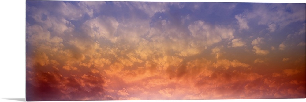 <p>Panoramic photograph of colorful clouds illuminated by the sun.</p>
