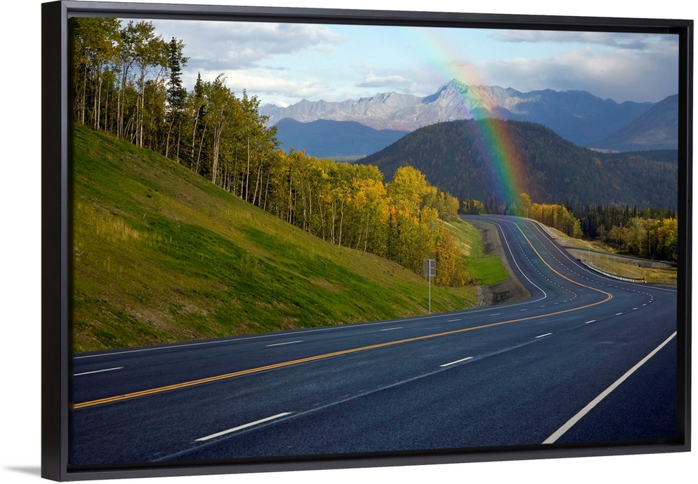 <p>Rainbow over Glenn Highway in Matanuska Valley during Autumn in Southcentral Alaska</p>