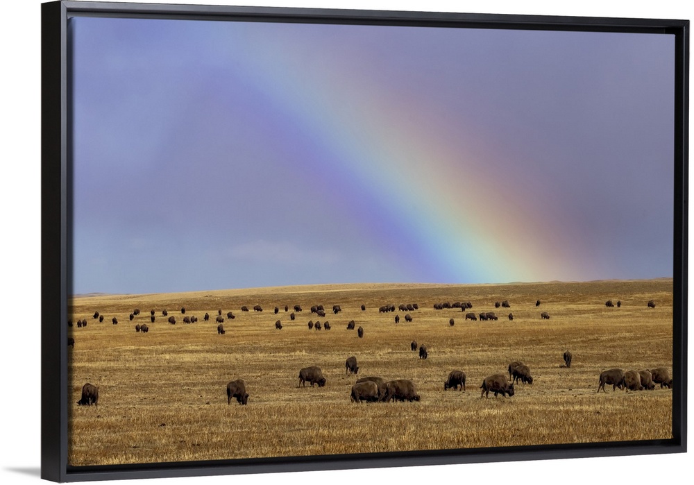 <p>Rainbow over the Blackfeet Nation Bison herd near Browning, Montana, USA.</p>