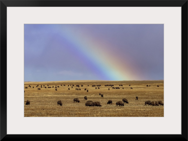 <p>Rainbow over the Blackfeet Nation Bison herd near Browning, Montana, USA.</p>