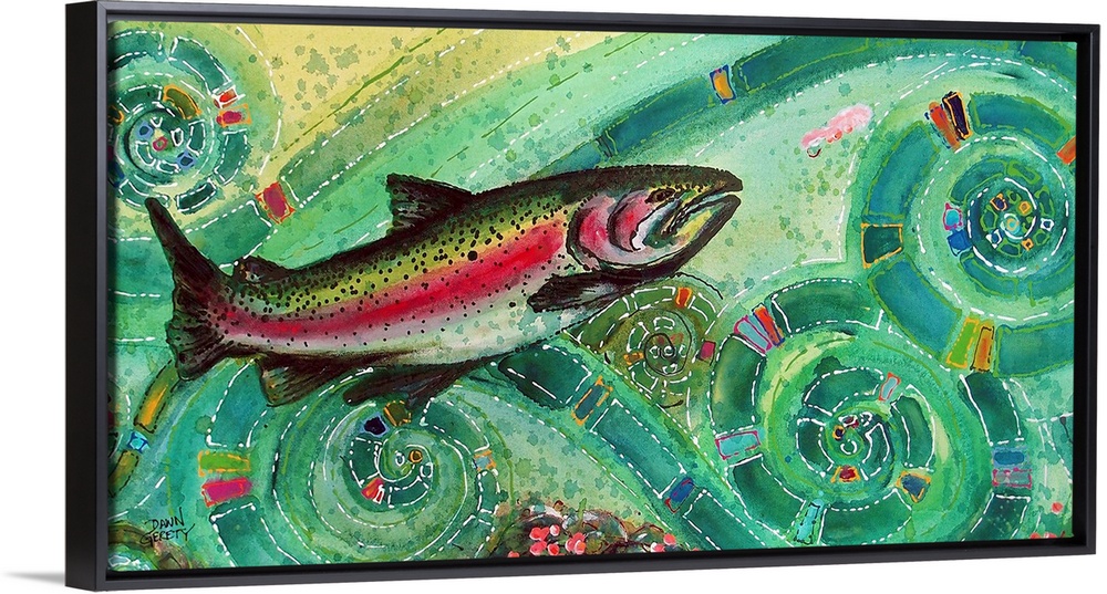 <p>Dawn Gerety was born in Sydney, Australia and raised across the globe in Girdwood, Alaska. As a lifelong Alaskan, she is moved by the natural splendor that has surrounded her her entire life – mountains, wildlife, rivers, wildflowers and outdoor activities. Dawn paints these images and creates her own language with a swipe of color or a rigid line of dots. She injects a fiercely whimsical vitality to Alaskan icons the only way she knows how.</p>