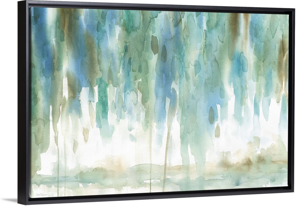 <p>Contemporary abstract art in cool greens and turquoise, mimicking falling rain.</p>