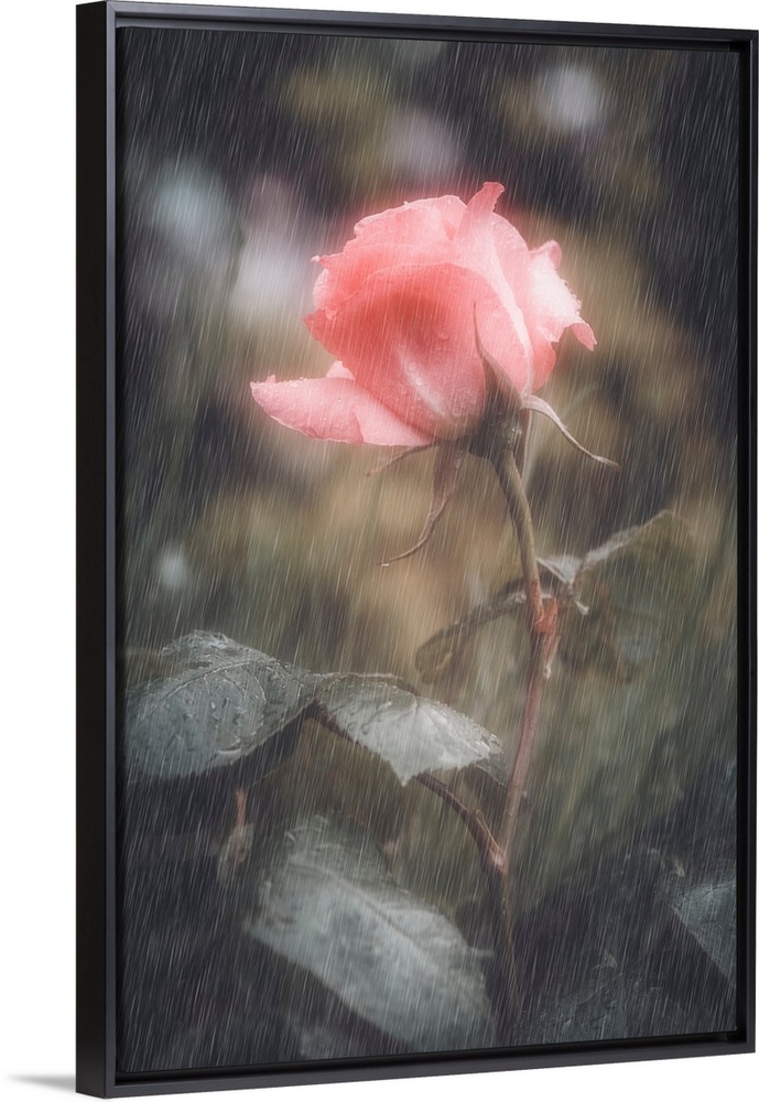 <p>A rose under a summer rain</p>