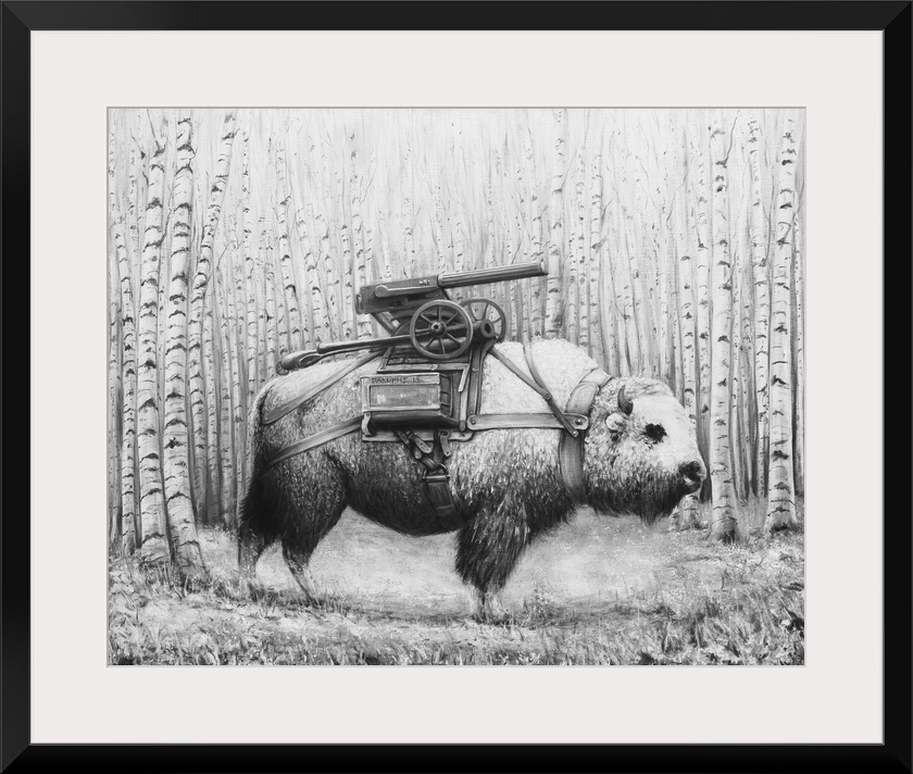Art Ruben Carrasco Contemporary Art Wildlife Drawing Eyes on Walls Collection Grey Wall Art Illustrations Animal Illustrations Latin Art Surrealism Wildlife Bison and Buffalo