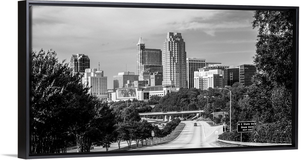 <p>Skyscrapers in Raleigh in the late afternoon, seen from McDowell Street, North Carolina.</p>