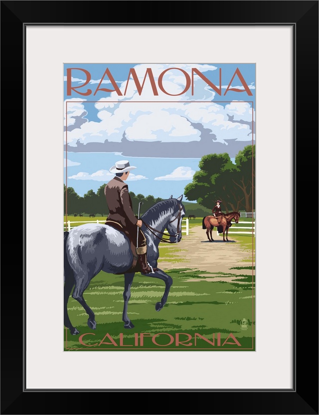 <p>Retro stylized art poster of a man on a horse at a thoroughbred horse farm.</p>