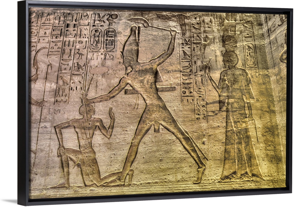 <p>Ramses II at Kadesh in center, Reliefs, Temple of Hathor and Nefertari, UNESCO World Heritage Site, Abu Simbel, Nubia, Egypt, North Africa, Africa</p>