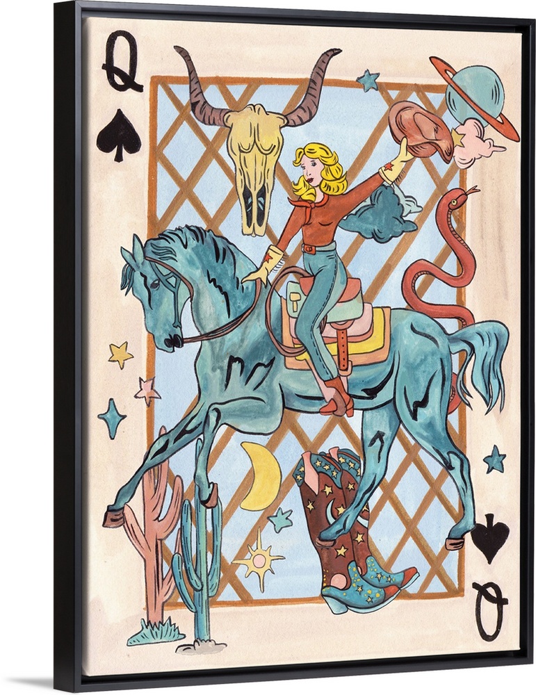 Art Howdy Cowgirl Decorative Art Painting People Cowboys Melissa Wang Western Wildlife Horse Butter Yellow