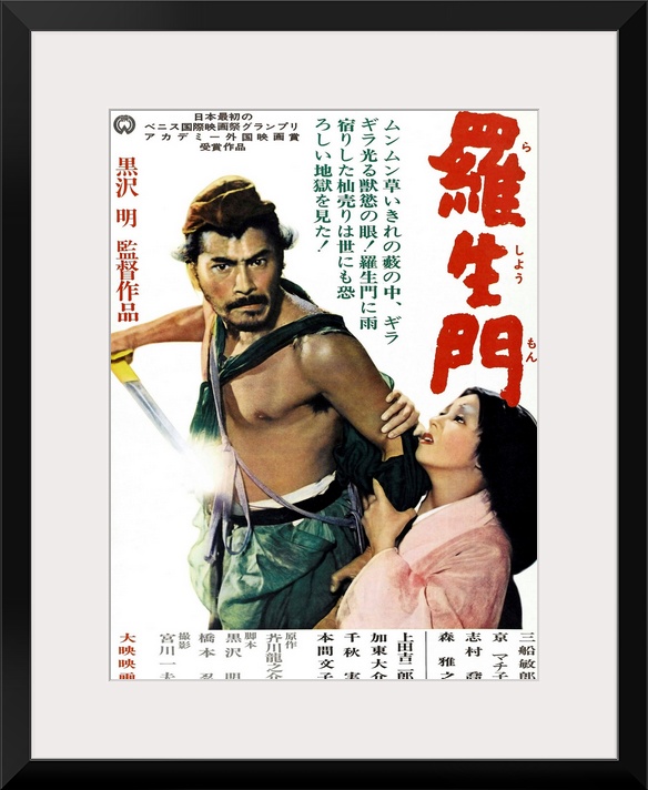 <p>Rashomon, Toshiro Mifune, Machiko Kyo On 1960s Japanese Re-Release Artwork, 1950.</p>