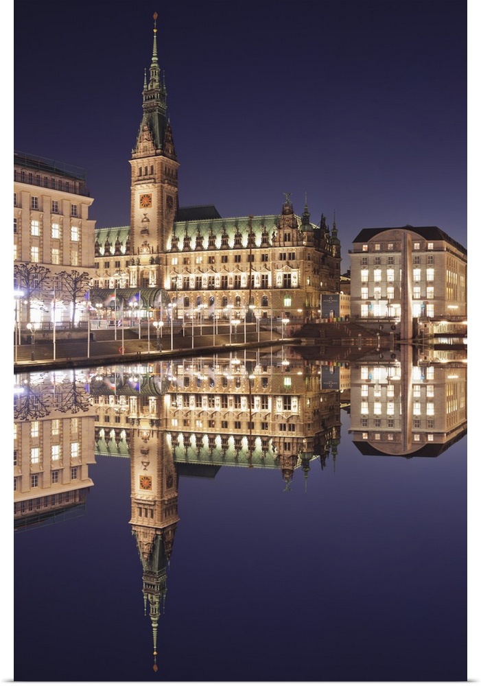 <p>Rathaus reflecting at Kleine Alster Lake, Hamburg, Hanseatic City, Germany</p>