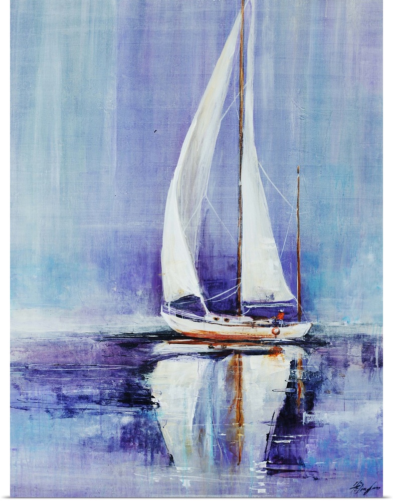 Art Coastal Blue Wall Art Contemporary Art Rivers, Lakes, and Oceans Farrell Douglass Painting Sailing Transportation Boat Sailboat