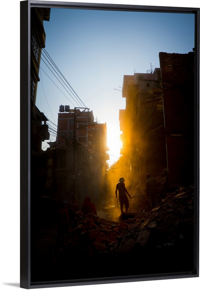 <p>Rays of early evening sun on the dusty streets of Thamel after earthquake, Kathmandu, Nepal</p>