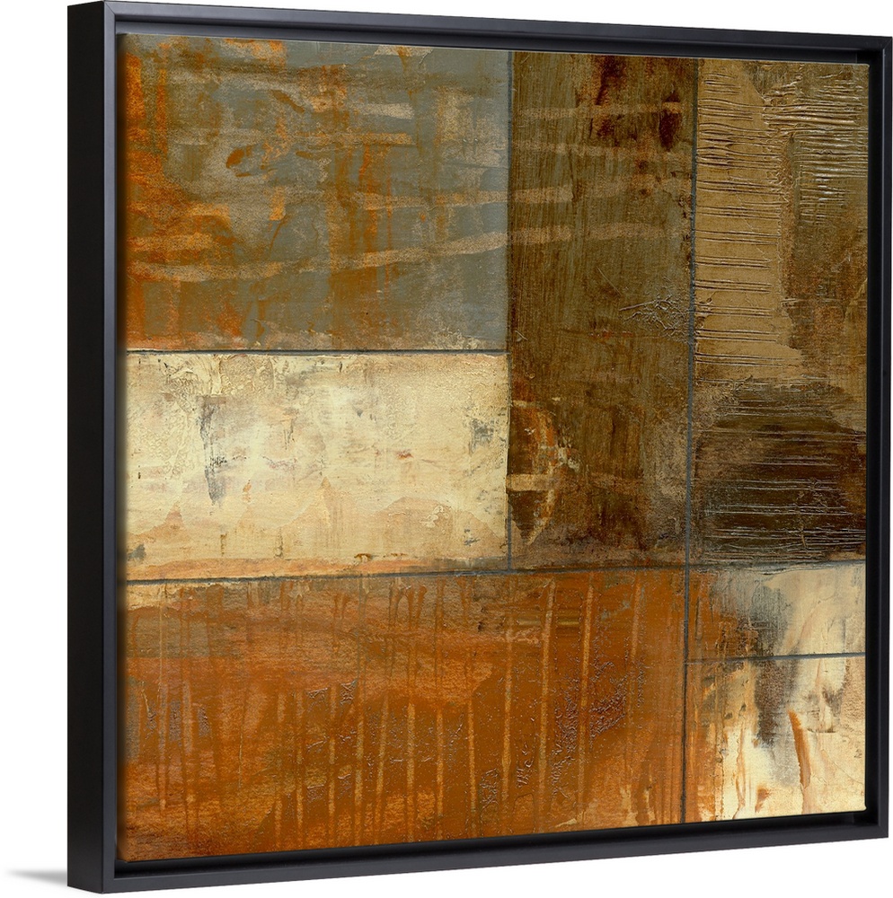 <p>Square, oversized artwork for a living room or office of side by side rectangles of varying sizes, divided by thin lines. Painted in earth tones with rough, textured brushstrokes and several areas where lines have been scraped through wet paint.</p>