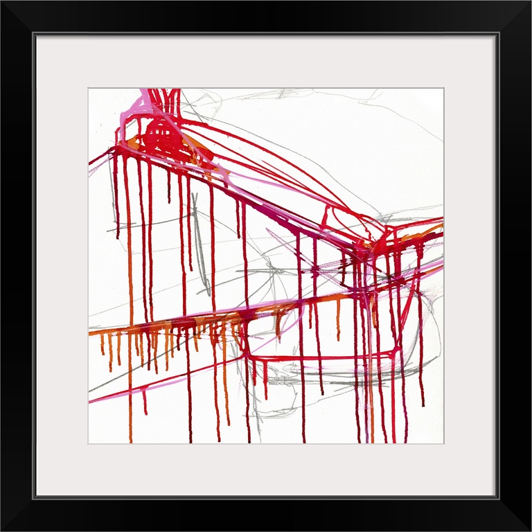 <p>Contemporary abstract artwork with streaks of dripping red paint over white.</p>