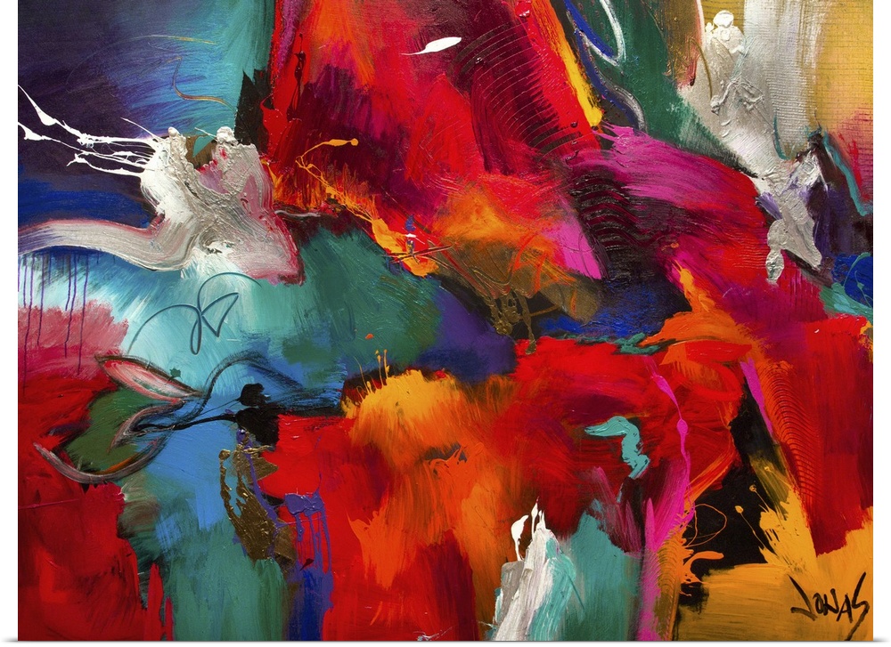 <p>Contemporary abstract painting using wild and vivid colors to create movement and depth.</p>