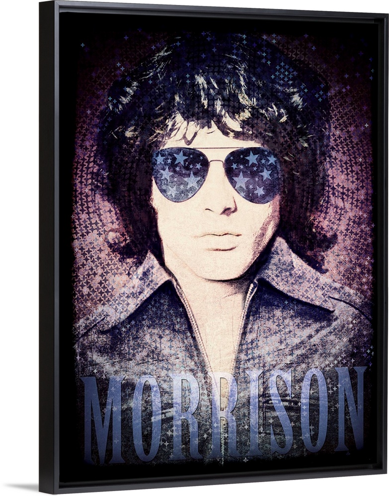 <p>Jim Morrison wearing sunglasses reflecting stars on a psychedelic background with 'Morrison' written at the bottom.</p>