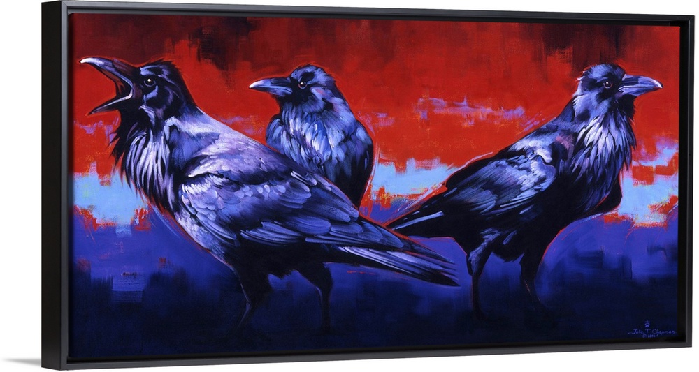 Art Blue Wall Art Julie Chapman Contemporary Art Wildlife Painting Red Wall Art Wildlife Bird Crow and Raven