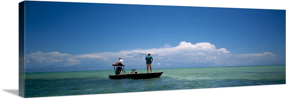 <p>Rear view of a couple fishing in the sea, Islamorada, Florida Keys, Monroe County, Florida, USA</p>